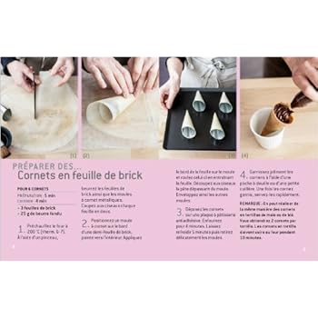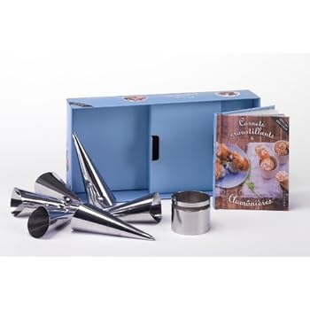 Des recettes salées et sucrées, simples et efficaces, pour un apéritif original et chic.Cornets à la mousse de chèvre et aux pignons, aux rillettes de saumon, au foie gras et confiture d’oignon, à la glace…Aumônières aux saint-jacques, aux poires et gorgonzola,à la rhubarbe et aux fraises…Ce coffret comprend :- 6 moules à cornet en Inox- 1 cercle en Inox pour faciliter la confection des aumônières- Un livre de 23 recettes de cornets et aumônières, avec plusieurs étapes illustrées pour apprendre à faire des cornets en feuille de brick ou en pâte préétalée (brisée, feuilletée, sablée) et à utiliser l’anneau à aumônières.