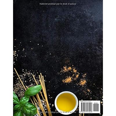 légers et pratiques. Mise en page et interlignes agréables. Le volume fait 215 mm x 279 mm (8,5 x 11 pouces), pour 0,6 cm d’épaisseurCouverture en carton souple avec impression haute-qualité et finition plastifiée brillante pour une bonne résistance à une utilisation en cuisinePages imprimées sur un papier extra-blanc de haute qualitéChaque page numérotée, pour retrouver rapidement vos recettes préférées grâce à la table des recettespages de recettes sont pourvues de parties lignées pour :SommaireNom de recetteNuméro de recettePartsTemps de préparationTemps de cuissonTempérature du fourIngrédientsPréparationNotesDate
