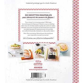 100 recettes inratables pour découvrir les saveurs du Japon ! Vous aimez la cuisine japonaise ? Maîtrisez les techniques de base pour devenir un pro et réaliser chez vous les recettes de sushis et makis traditionnelles. Amusez-vous avec les goûts et les formes pour revisiter ces plats typiques, et impressionnez vos proches en confectionnant des onigiris, des chirashis ou des sushis cakes ! Avec des sommaires thématiques très pratiques, pour répondre à toutes vos envies !100 % Cuisine, une collection indispensable !